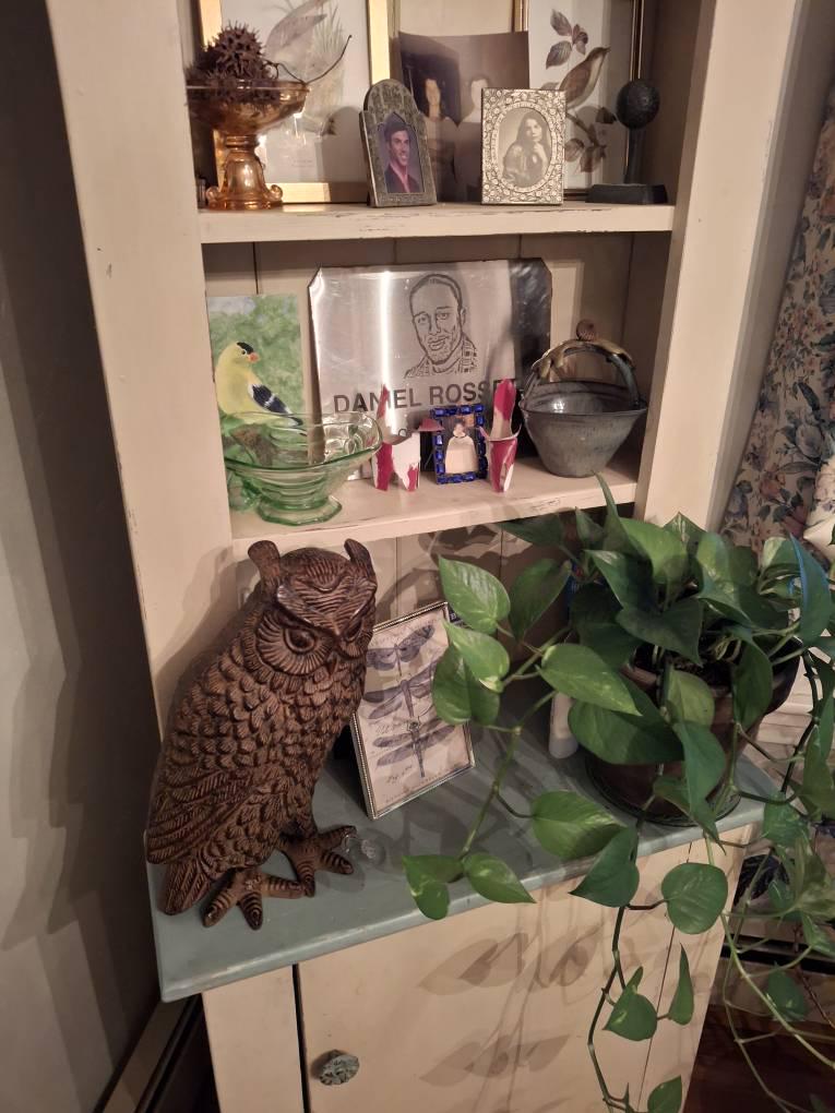 This is a stylized sculpture of the Great Horned Owl (Bubo Virgianis) or Hoot Owl, a large tufted owl native to North America. The deep hooting voice and classic stare, make this species the wise and cranky character of storybooks. This handsome figure can grace a library bookshelf, or garden wall. Made of cast aluminum with a rustic bronze finish, it stands 12 1/2-in H.