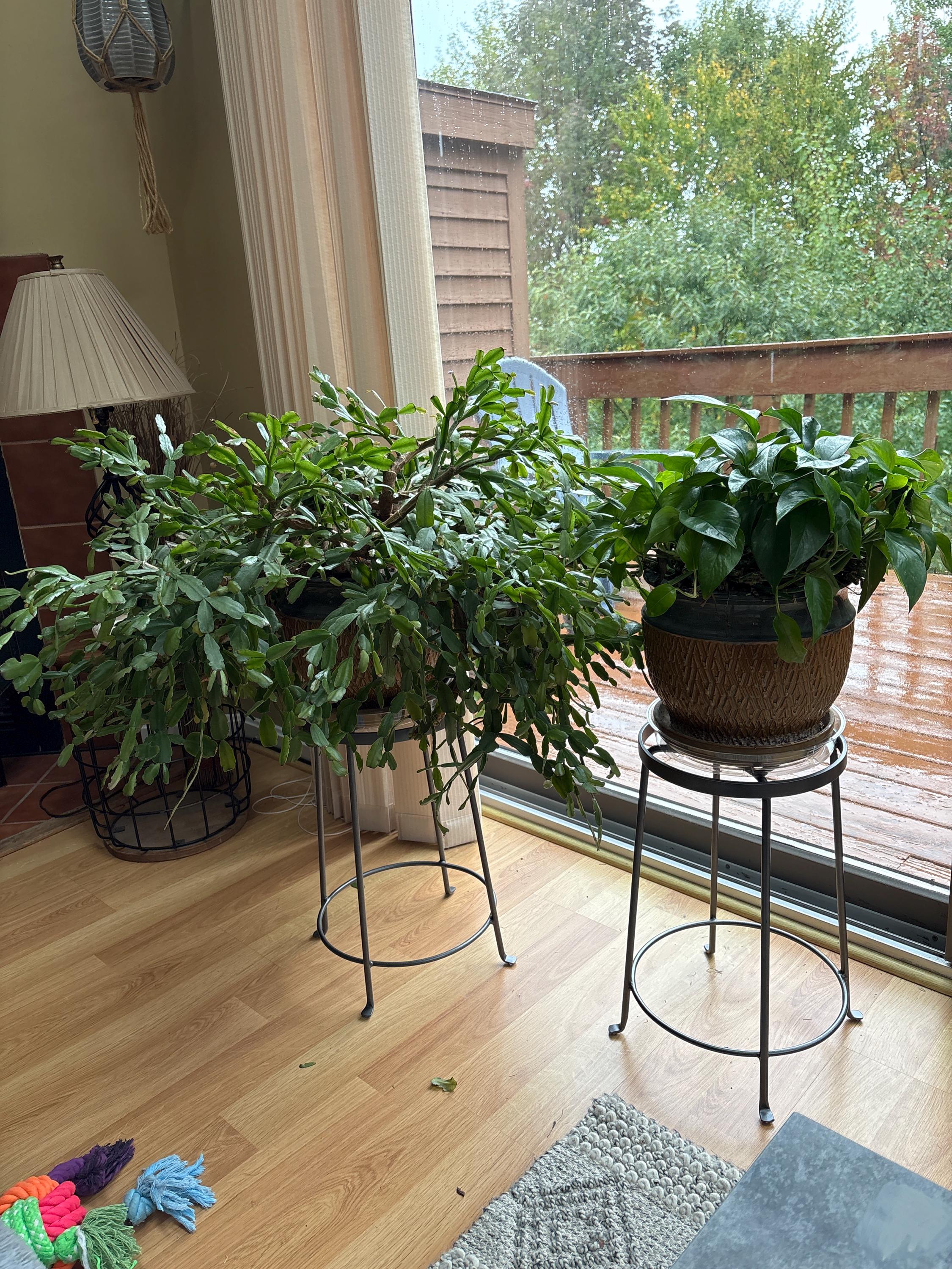 This wrought iron plant stand is made for indoor and outdoor planters. Sturdy construction with wrought iron open top and gracefully flared legs for a light, airy look. Finished with a Graphite powder coating, they retain the look of natural iron.