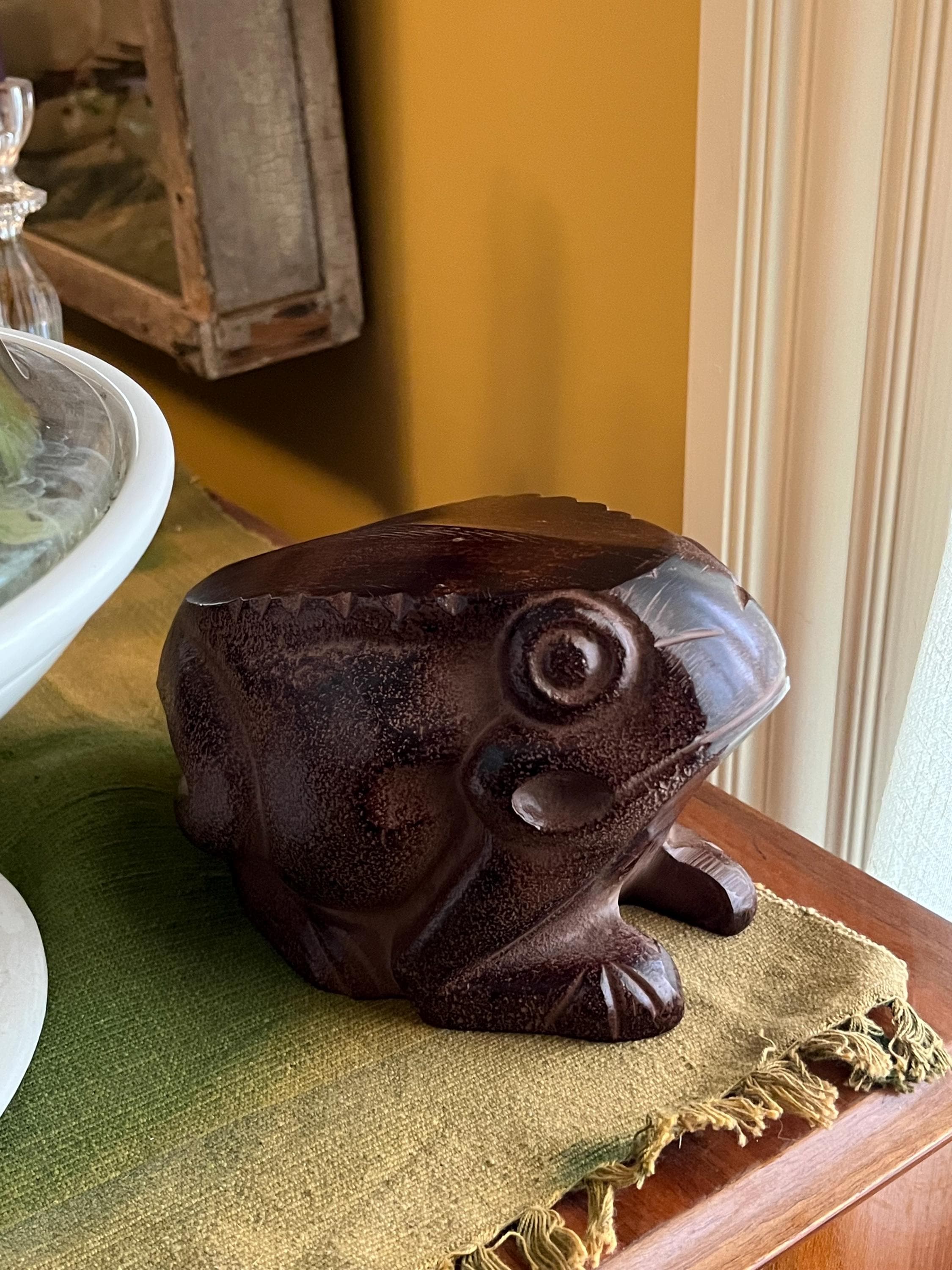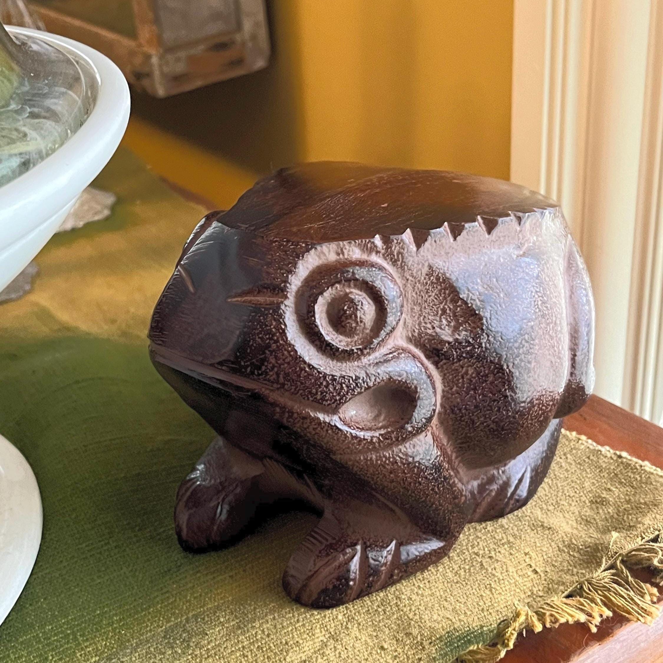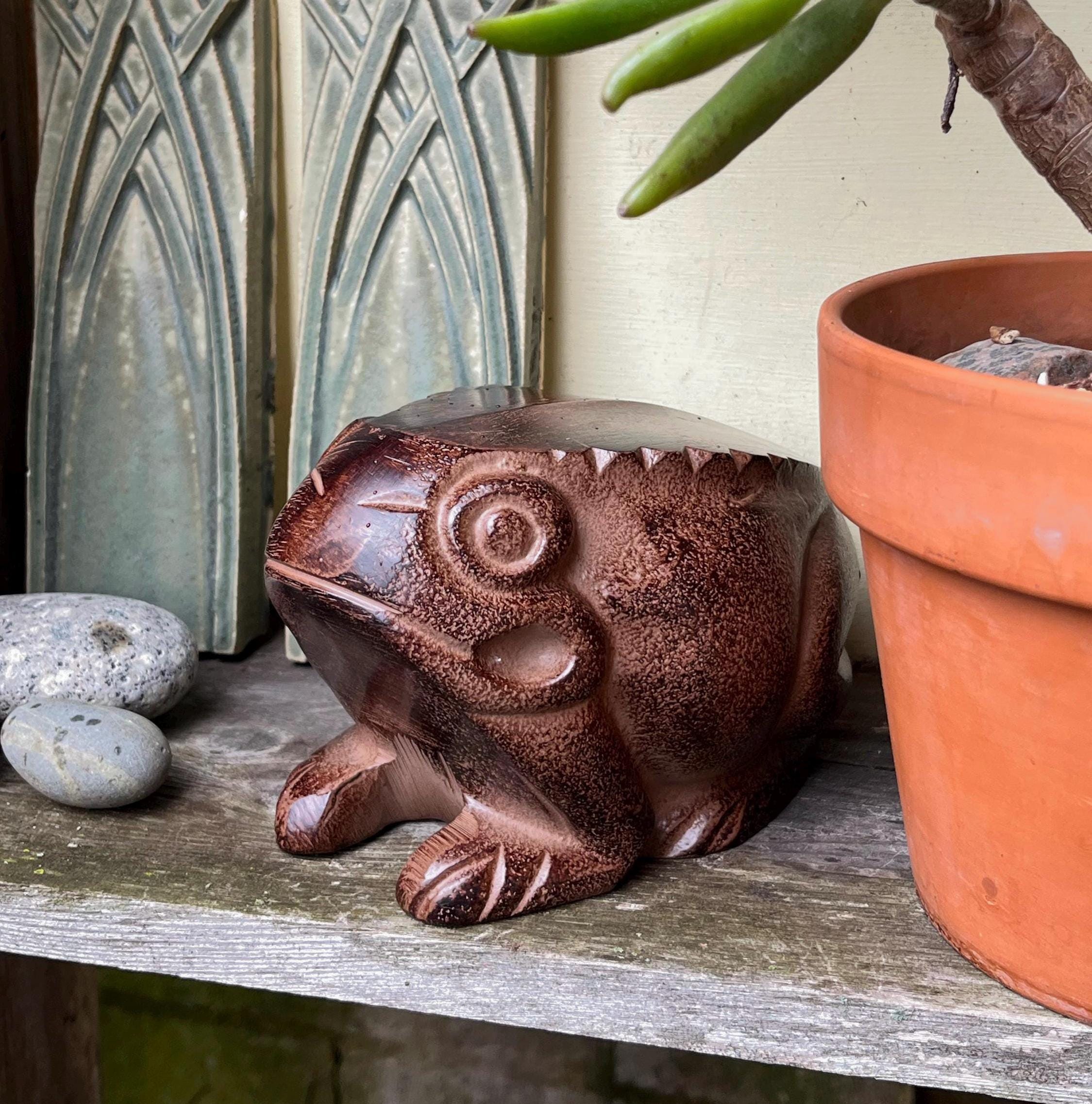 This folk-art style frog sculpture will be equally at home on the plant shelf or in the garden. From ideas of metamorphosis, life and fertility, and its association with water, many cultures revere the from as a symbol of creation, change and vitality.
