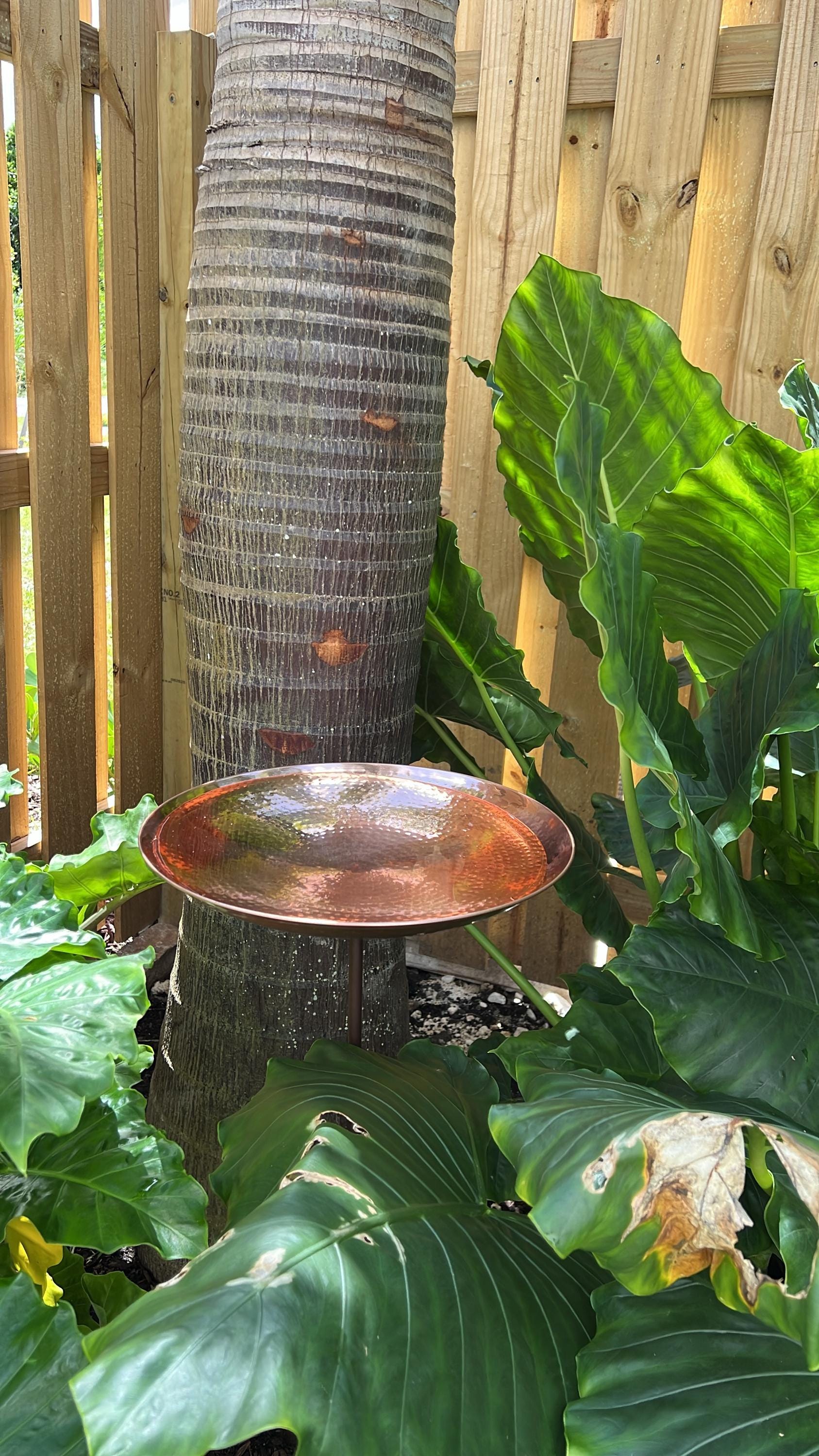 **If you desire to keep the birdbath looking as good as new, you can recoat your birdbath with a clear sealant to protect the copper finish.**
